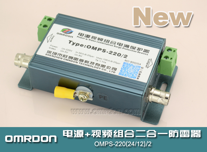 歐姆雷盾(OMRDON)CCTV安防監控系統模擬攝像機二合一防雷器(又稱:二合一電涌保護器、二合一浪涌保護器、二合一避雷器)是依據IEC和GB標準設計,適用于不帶云臺控制的模擬攝像機(Analog Camera)的電源和信號線路的雷擊電磁脈沖(LEMP)電涌保護,是一體化多功能電涌保護器。主要于對監控模擬攝像機的電源、視頻線路實施電涌保護,可充分保護最新技術的監控設備。