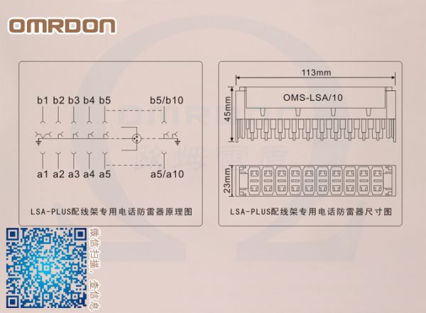 歐姆雷盾(OMRDON)OMS-LSA/10配線架專用電話防雷器主要用于通信系統程控電話交換機內外線、集團電話等設備提供線/線間及線/地間的浪涌過電壓保護,直接插入KRONE( 科龍)LSA-PLUS配線架上,每組10線保護;特別適用于模擬電話交換和ISDN網絡系統。應用于用于雷擊區域LPZ0- LPZ1分區界面。