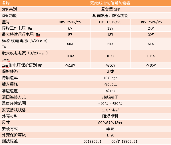 歐姆雷盾(OMRDON)二線制雙絞線控制信號防雷器,RS485防雷器(SPD、電涌保護器)是依據IEC和GB標準設計,主要用于工控系統數據控制信號、通訊專線、遙測信號、遙控信號的電涌保護器,應用在雷擊保護區1-2區和2-3區。