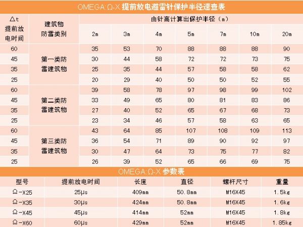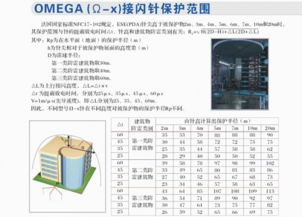 法國OMEGA:Ω-X提前放電避雷針的工作原理就是產(chǎn)生一個比普通避雷針更快的上行先導(dǎo),提前接閃,保護范圍比普通避雷針更大。