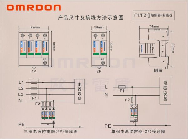 歐姆雷盾(OMRDON)二級(jí)電涌保護(hù)器(Surge Protection Device,簡(jiǎn)稱SPD)(又稱電源防雷器、電源避雷器、浪涌保護(hù)器、過(guò)壓保護(hù)器),適用于交流380V(50Hz/60Hz)及以下的TN-S、TN-C-S、TT、IT等供電系統(tǒng)因雷擊而產(chǎn)生的雷擊電磁脈沖(LEMP)保護(hù),用于雷擊區(qū)域的LPZ1區(qū)與LPZ2區(qū)交界處,其設(shè)計(jì)依據(jù)符合GB18802.1,IEC61643-1技術(shù)標(biāo)準(zhǔn)。