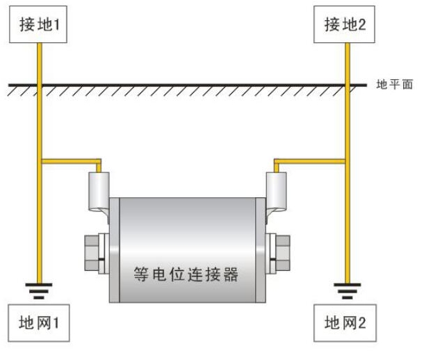 1、等地電位連接器為串聯連接方式,將產品串聯在兩個地網線上即可。